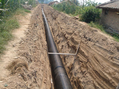 福建泉州HDPE双壁波纹管农污水改造施工现场!