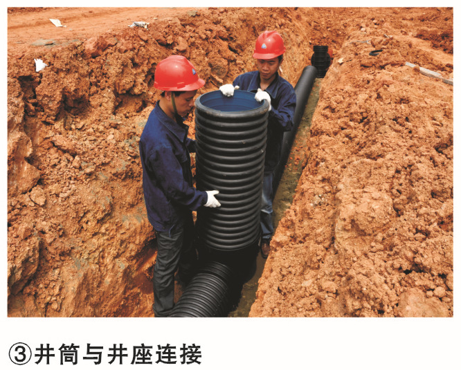 刚性连接:检查井砌筑时,井壁内预埋管件或者短管,承口向外,便于插口连接。采用这种连接方式时,水泥砂浆应饱满。